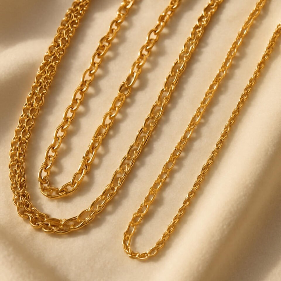 - Klasikinė grandinėlė – universalus pasirinkimas, tinkantis tiek moterims, tiek vyrams. Populiariausi tipai: „Bismarck”, „Anchor” ar „Figaro”.