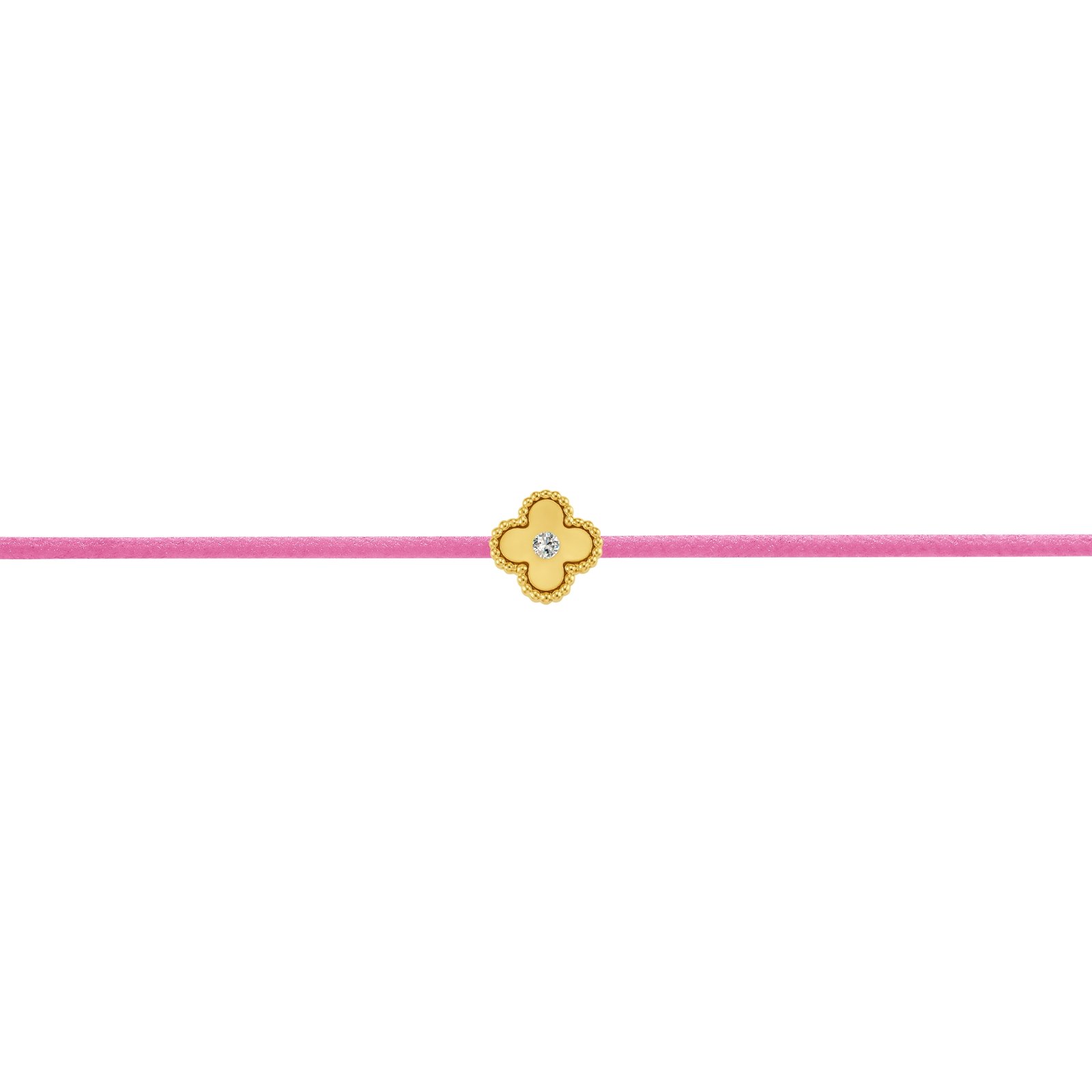 See roosa ristiku ja looduslike teemantidega käevõru sümboliseerib õnne, armastust ja sisemist jõudu. See on valmistatud kvaliteetsest niidist, looduslikust teemandist ja 14k (585 trahvi) kullast - nende materjalide kombinatsioon tagab vastupidavuse ja laitmatu esteetika.
