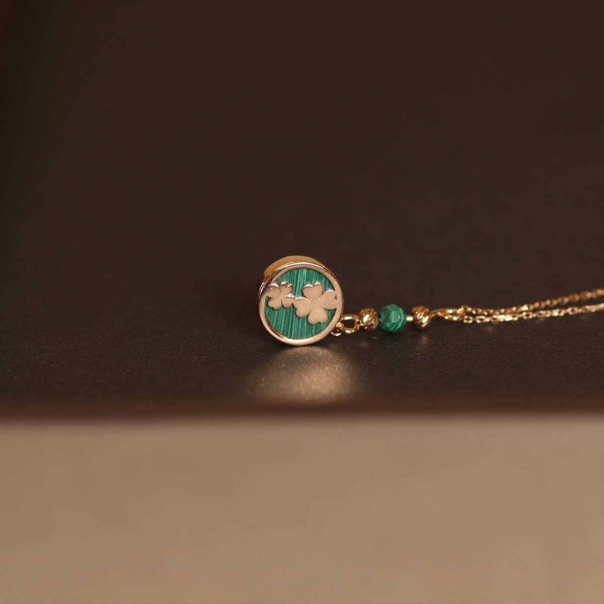 Łańcuszek z zawieszką "Koniczyna malachitowa"